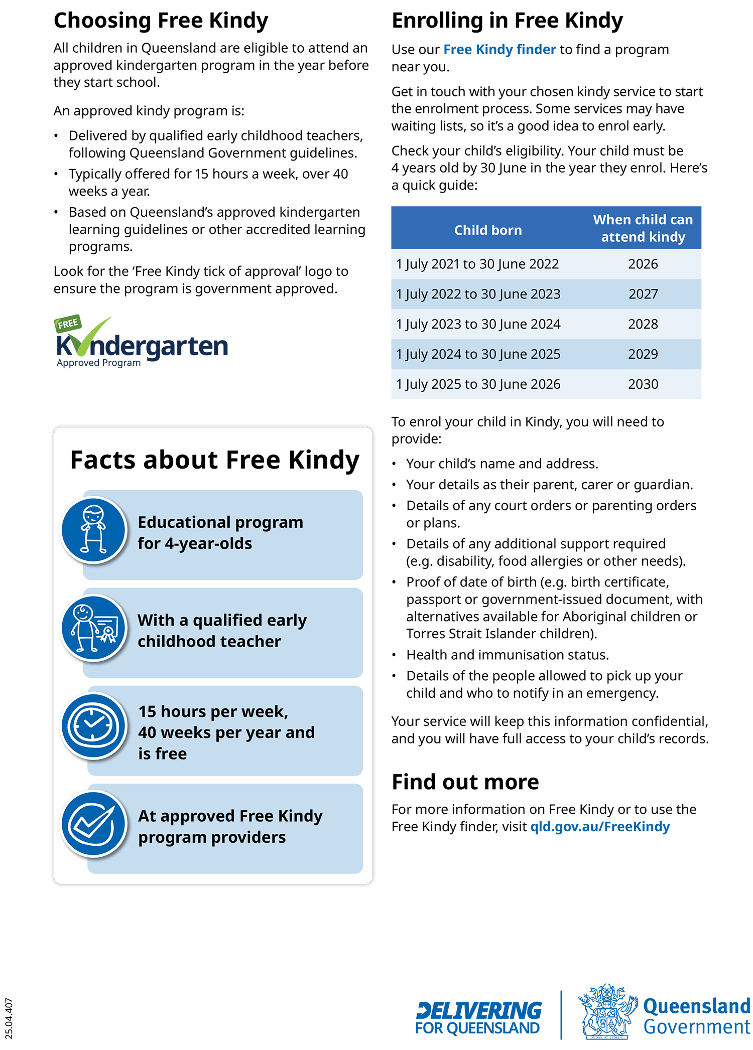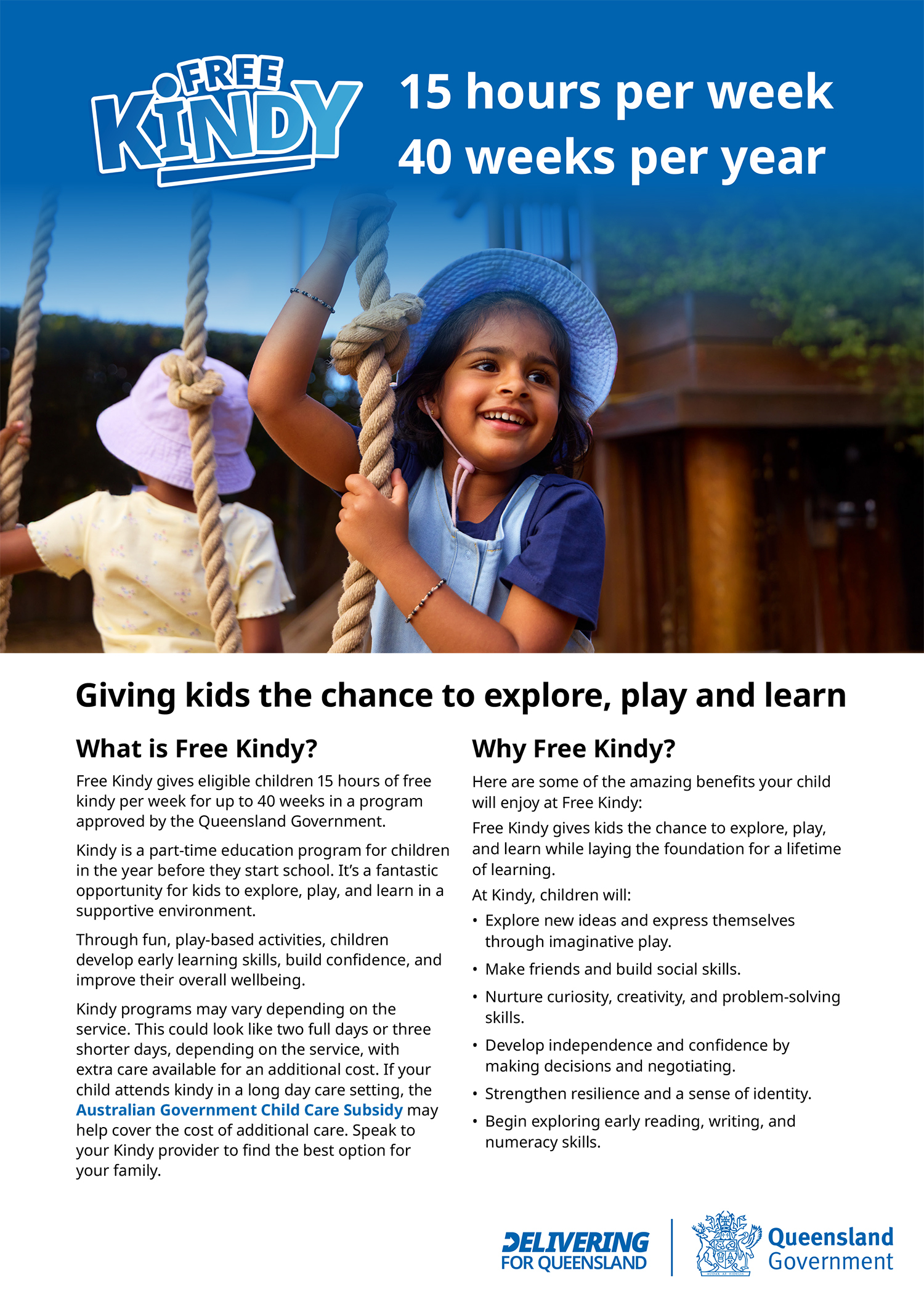 For more information visit www.qld.gov.au/freeKindy